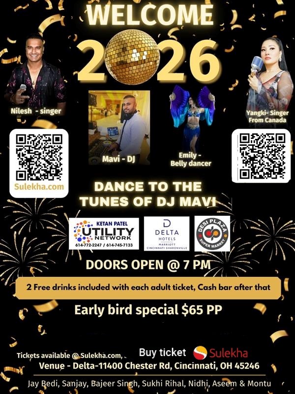 Welcome the New Year in a grand style with the '2026 New Year Party' slated for the evening of 31st December 2025. This multilingual, fusion dance party promises a night to remember with pulsating music, lip-smacking food and drinks and a chance to bid goodbye to the year in the company of fellow Hindi and English speaking party-goers. This New Year event in Cincinnati is all set to be a vibrant celebration of culture, joy, and new beginnings.