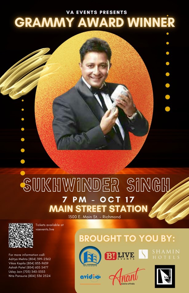 Festive Live Concert with the acclaimed Sukhwinder Singh! Join us on Thursday,