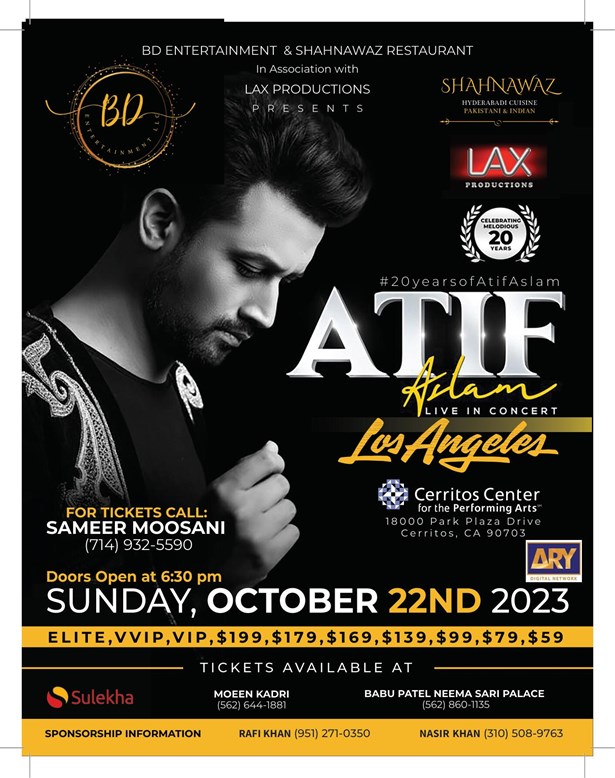 Get ready to be serenaded by the mesmerizing melodies of Atif Aslam as he graces the iconic city of Los Angeles with his much-anticipated live concert. The "Atif Aslam Live Concert in Los Angeles 2023" promises an evening of soulful tunes, electrifying performances, and a celebration of music that transcends borders and languages.