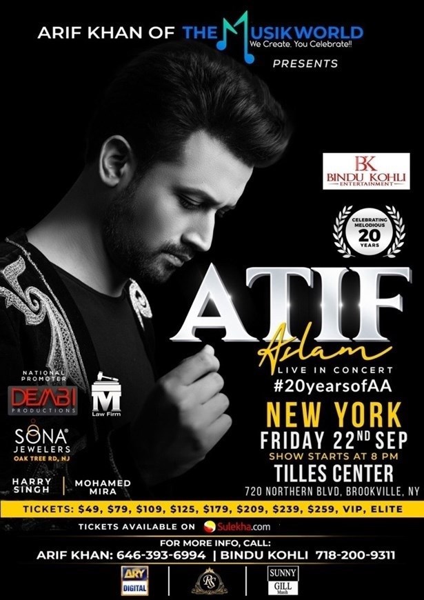 The "Atif Aslam Live Concert in New York" promises an evening of