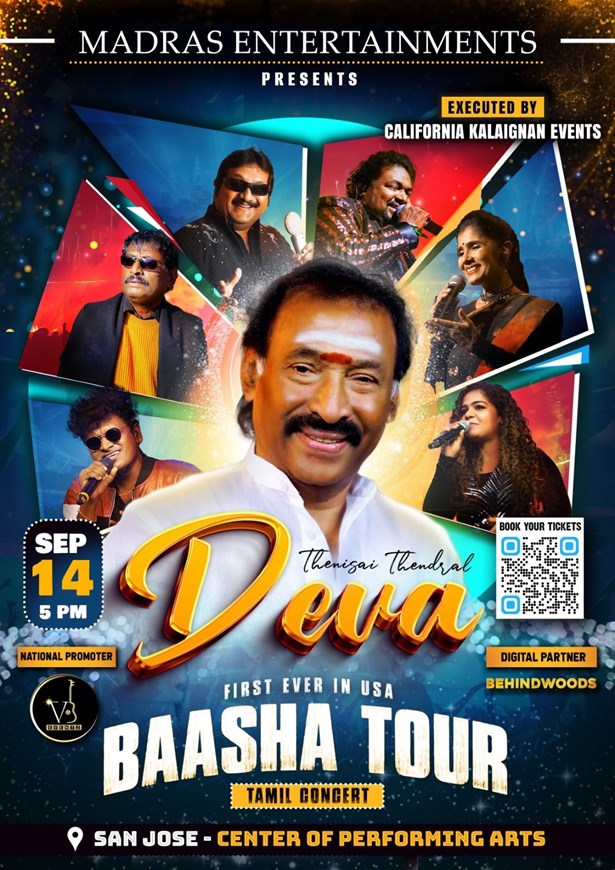 If you grew up in the 90's you wouldn't want to miss this!! Thenisai Thenral "Deva" first time ever in the USA along with singers Mano, Anuradha Sriram, Srikanth Deva, Sabesh Murali, Ajay Krishna, Priya Jensen & 30+ live band musicians..