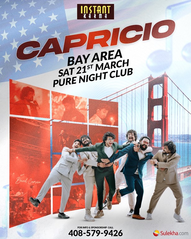 Immerse yourself in an unforgettable night of music and camaraderie at the "Band Capricio Rise Tour 2026 - Bay Area (Age 21+)" on the 21st of March, 2026. Witness the magic of classical fusion Telugu band, Band Capricio, as they blend distinct genres to create an unparalleled musical experience. This live concert and night party is sure to leave you entranced with its unique fusion of melodies and rhythms.