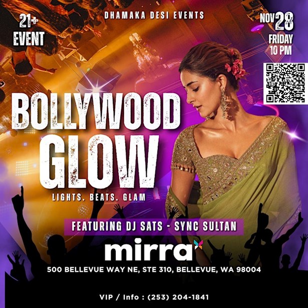 The event is set to unfold at the elegant Mirra, a social entertainment venue nestled in the Lincoln South Tower's 3rd floor. Located in Bellevue, WA, United States, at 500 Way Northeast Suite 310 3rd floor, Mirra offers a safe and accessible environment for party-goers. Adding to the convenience are ample parking facilities and an array of delectable Indian restaurants nearby, ensuring a complete, enjoyable experience for all attendees.