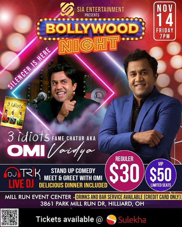 Get ready Ohio! A fantastic event is coming your way, a scintillating 'Bollywood Night with OMI Vaidya' on the 14th of November, 2025. This extravagant night is not just about music and dance, but also a burst of laughter, food, and drinks. Immerse yourself in the rhythmic beats of Bollywood, enjoy the comedy of Omi Vaidya, and experience a memorable evening of Hindi culture, right in the heart of Ohio.