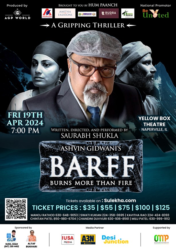 Experience #Barff as it embarks on its captivating journey across the #USA this April! Don't miss out on this gripping theatrical starring the talented Bollywood actor from the Academy Award-winning film #SlumdogMillionaire and national awardee #SaurabhShukla.