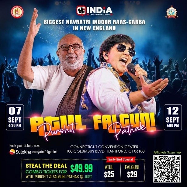 Get ready for the Biggest Navratri Celebration in Connecticut & New England with two legendary singers, Garba King Atul Purohit and the Garba Queen Falguni Pathak