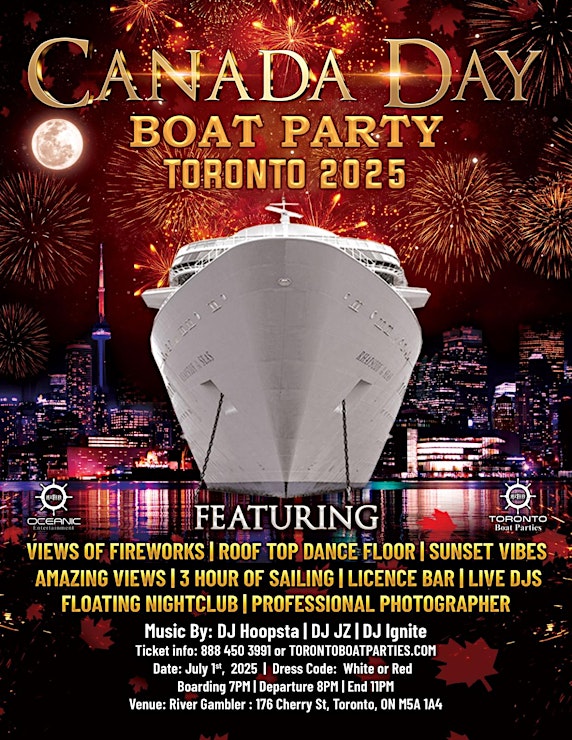 Canada Day Fireworks Boat Party Toronto 2025 Presented by Toronto Boat Parties & Oceanic Entertainment