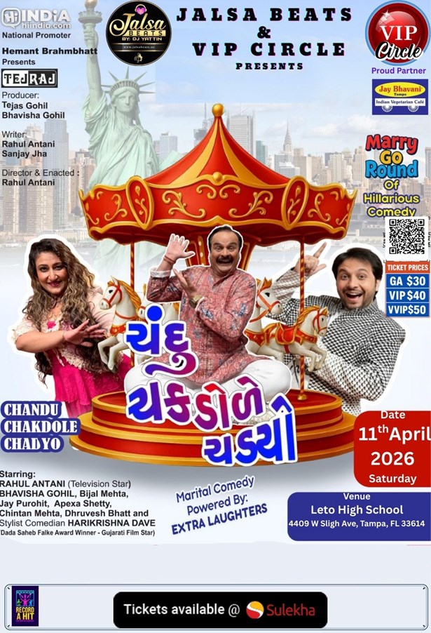 Prepare yourself for an unforgettable evening as we bring you 'Chandu Chakdole Chadyo', a captivating Gujarati Natak, on the 4th of November, 2026. This Gujarati Drama, brought to you by DJ Yattin, is set to unfold at the Leto High School in Tampa, FL. The event promises to be a rollercoaster ride of emotions, laughter, and stunning performances that encapsulate the true spirit of Gujarati theatre. Be ready to mark your calendars and immerse yourself in this fascinating world of drama.