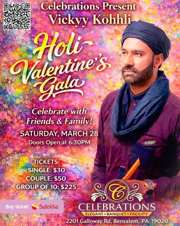 Immerse yourself in a vibrant blend of music, dance, food, and drink at the Musical Holi-Valentine Gala with Vickyy Kohhli's Live Bollywood Band. Settle in for an unforgettable evening on March 28th, 2026, where Bollywood's infectious energy meets the romantic charm of Valentine's and the colorful exuberance of Holi. This gala is a perfect fusion of Hindi and Punjabi cultures, all set to the rhythm of live music. So, mark your calendars and get ready to sway to the melodies under the starlit sky of Bensalem, PA.