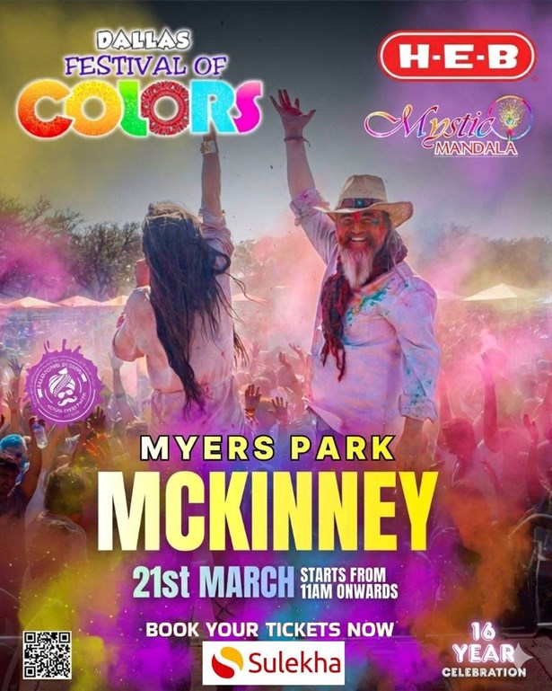Mark your calendars for the 21st of March, 2026, as we gear up to celebrate the 16th year of the Dallas Festival of Colors at Myers Park. This grandeur event is a beautiful amalgamation of dance, Bollywood, Holi, and music, drawing people from all walks of life to revel in the spirit of unity and love. The festival promises an unforgettable experience filled with lively performances, vibrant color play, and foot-tapping music. Come, be a part of this joyous celebration that perfectly encapsulates the essence of Holi.