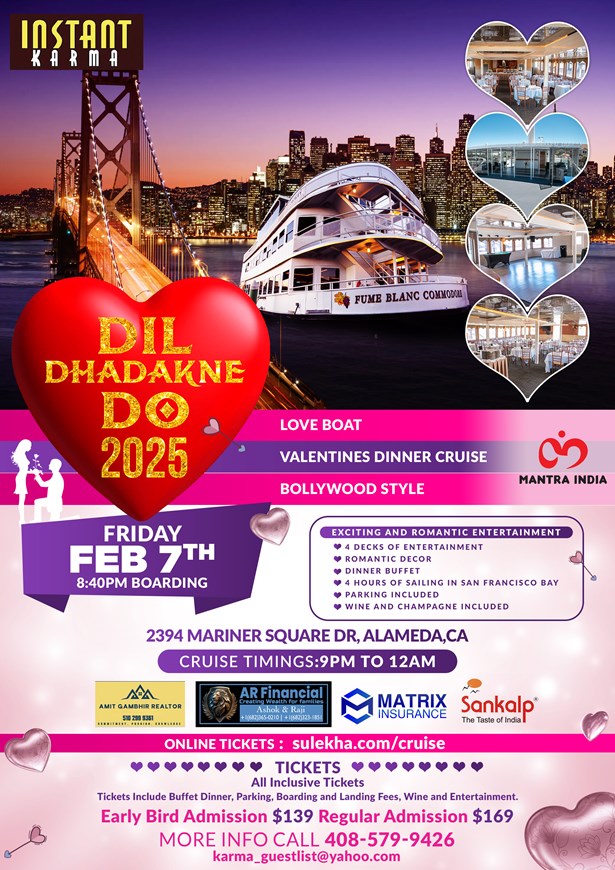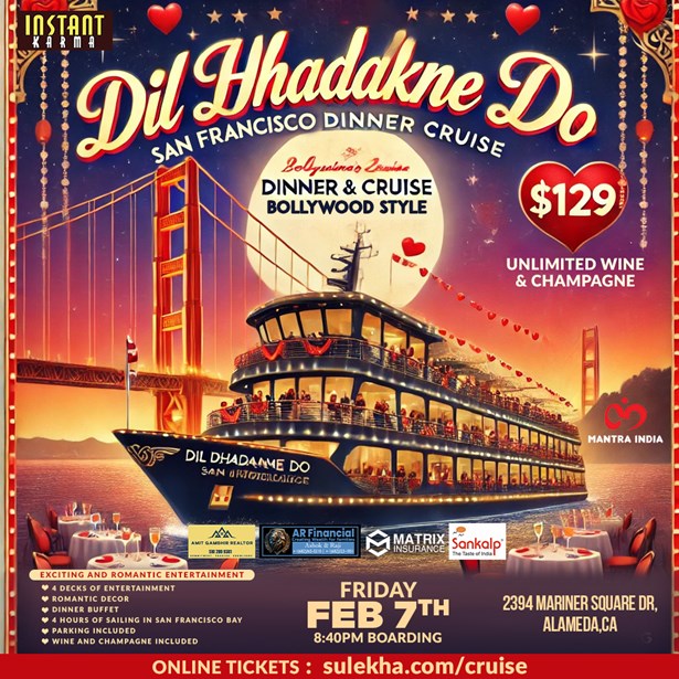 Dil Dhadakne Do - San Francisco Love Boat Valentines Dinner Cruise Bollywood Style (Tickets Include Buffet Dinner,Parking,Unlimited Wine and Champagne, Entertainment and 3 Hours of Cruising)