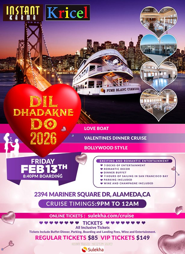 On February 13th, 2026, set your heart aflutter with the "Dil Dhadakne Do 2026 San Francisco Love Boat Valentines Dinner Cruise Bollywood Style". This isn’t just a love boat, it's a love boat Bollywood style! The event is brimming with a fusion of Hindi, English, and Punjabi music that will get you and your loved one dancing all night. The event isn't just about dance and music, it's also about celebrating love on Valentine's eve, cruising for 3 unforgettable hours. What's more? Your ticket includes a buffet dinner, unlimited wine and champagne, and parking. This is going to be one magical night party you won't want to miss.