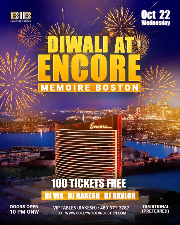 Buy ticketsEvent InfoVenueArtists Info Videos GalleryT & C FAQ Covid-19 Info Buzz Ticket Information Pay $0.00Register GENERAL ADMISSIOn $20.00 Available 0 1 2 3 4 5 6 7 8 9 100 Ticket close on Oct 230 Tickets / Total: Pay $0.000 Tickets Register Order Summary Tickets Order Summary Amount Payable $ Event Details BOSTON'S BIGGEST DIWALI PARTY AT ENCORE CASINO - MEMOIREMUSIC BY : DJ RAKESH ; DJ VIK ; DJ RAVLORDress Code : TRADITIONAL WEAR (HIGHLY RECOMMENDED)Date:WEDNESDAY , OCT 22nd , 2025Venue:MEMOIRE BOSTON1 Broadway, Everett, MA 02149VIP TABLES - RAKESH :480-371-7787Doors Open10:00pmStrictly A 21+ Event ONLYIMPORTANT NOTES - PLEASE READ* Be There Early To Avoid Long Lines* All Tickets are Final an NO REFUNDS whatsoever* CLUB has the right to refuse if capacity is reached. So COME EARLY !VALID FORM OF ID :State issued ID / Driver License or Passport. NO other forms of identification will be accepted! Photocopies or pictures of your IDs on your phone will NOT be accepted.Space is limited, FIRST COME FIRST SERVE. (NO REFUNDS) so buy your tickets soonNOTE:This is a public event which will be recorded. You may appear in pictures/video recordings. We have full rights to use this media anywhere without seeking your prior or post permissions.Venue Details MEMOIRE BOSTON1 Broadway , Everett , MA 02149 X Report Error Is the information provided incorrect? Report it now! Event has been cancelled Event has been postponed This is an Adult event Event is fake/Inappropriate/Duplicate This event is a spam Please remove this event This event is private About this eventExperience Diwali Like Never Before at ENCORE (MEMOIRE BOSTON) Mark your calendars for the 22nd of October, 2025, and get ready to immerse yourself in a night of vibrant colors, electrifying beats, and joyous celebration. DIWALI at ENCORE (MEMOIRE BOSTON) is an event like no other, blending the exhilarating energy of a Bollywood Live Concert with the festive spirit of Diwali. Dance the night away to the rhythm of Hindi, Telugu, Gujarati, and Punjabi music. Whether you're a fan of multilingual beats or prefer the glitz and glamour of Bollywood, this Night Party has something for everyone. So put on your party shoes and get ready to experience Diwali in its full glory! Meet the Maestro – DJ Rakesh Setting the stage on fire with his electrifying beats and energetic performances is none other than the talented DJ Rakesh. Known for his versatility, DJ Rakesh's music transcends borders and languages. From Hindi and Gujarati to Telugu and Punjabi, his command over different genres is sure to keep you on your toes. His ability to blend traditional Indian music with contemporary beats is what sets him apart and makes him a crowd favorite. Get ready to sway to his beats and let his music take you on a joyous journey this Diwali. Discover MEMOIRE BOSTON – The Perfect Stage for Celebration Nestled in the heart of Everett, Massachusetts, MEMOIRE BOSTON is the perfect venue for this grand celebration. Located at 1 Broadway, this venue is renowned for its safety and accessibility. With ample parking and a multitude of nearby attractions, MEMOIRE BOSTON is more than just a venue. It's an experience. After a night of dancing and celebration, refuel at one of the many nearby Indian restaurants, each serving a taste of home in the heart of the United States. Grab Your Tickets Today! Don't miss out on this once-in-a-lifetime experience. General admission tickets are available for just $20.00. Secure your spot today and get ready for a night of unforgettable memories, laughter, and joyous celebration. We look forward to sharing this special night with you at DIWALI at ENCORE (MEMOIRE BOSTON). Terms & Conditions1. Tickets once purchased cannot be modified or cancelled. Refunds will be initiated only in case of event cancellation. 2. Transaction fee per ticket may be levied. Please check the total amount before payment. 3. Organizers hold the right to deny late entry to the event. Hence, we recommend reaching the venue an hour before the event starts to ensure smooth entry. 4. If an event is canceled/postponed, Sulekha will refund only the face value of the ticket and NOT the transaction fee. 5. Every venue has its own rules and regulations. They hold the right to deny entry on the basis of the same. 6. These terms and conditions are subject to change from time to time at the discretion of the organiser. 7. Important Alert: Tickets purchased from third parties are not authorized by Sulekha and will be denied entry. Buy only from Sulekha to ensure valid access. 8. As per current Boston Metro Area mandatory health requirements, all attendees must present proof of a COVID-19 vaccination in order to enter the venue and attend the show. 9. Mask wearing is mandatory for all. 10. The venue reserves the right to alter safety protocols at any time and at its sole discretion of the management. 11. The event organizers value the safety of our audiences, artists, and staff. FAQ's Where is the DJ Rakesh Concert happening? MEMOIRE BOSTON, 1 Broadway, Everett, MA When do DJ Rakesh event tickets go on sale in Everett, MA? DJ Rakesh upcoming concert tour tickets go on sale 1 to 2 months prior to the performance and sometimes even a year in advance. Once the tour dates and concert schedule are announced, you can check our event calendar to find the date and venue. DJ Rakesh concert tickets will generally be available within 24-48 hours of a tour announcement. How do I purchase tickets? There are several options when buying tickets: You can purchase any ticket to any events listed on our website. To buy, select the # of tickets you want to purchase in the dropdown of a specific event and follow the instructions. Email. Not sure where to go or how to buy tickets? Email us at us.sulekha@sulekha.com. Phone. You can purchase tickets over the phone 1-512-788-5300 (Mon to Fri - 11am to 8pm – EST) What is Sulekha's Refund Policy? All sales are final. No Refunds will be issued unde