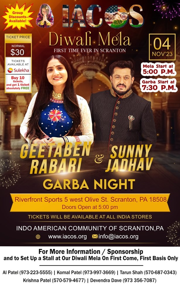 Get ready for an electrifying evening of Diwali celebrations as we bring you a grand Diwali Mela featuring two of India's most talented musical artists, Geeta Rabari and Sunny Jadhav. Join us at the Riverfront Sports in Scranton, PA, for a night filled with music, dance, cultural delights, and the spirit of Diwali.