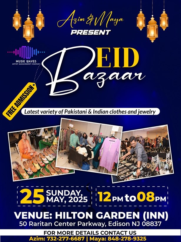 Event Details About this event Eid shopping in the heart of Edison. NJ. Variety of vendors carrying Pakistani/Indian clothes and jewelry for all your last minute Eid shopping. FREE PARKING AND FREE ADMISSION FOR ALL. Venue Details Venuelocation Hilton Garden Inn50 Raritan Center Parkway , Edison , NJ 08837 Organizer Details Azim & Maya4 Upcoming Event(s) Follow