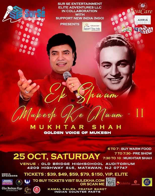 Events UpdatesEk Shaam Mukesh Ke Naam: A Musical Tribute by Mukhtar Shah Music lovers across the United States are in for a treat this summer as the renowned singer Mukhtar Shah embarks on his highly anticipated concert tour, "Ek Shaam Mukesh Ke Naam." This tour pays homage to the legendary singer Mukesh, whose timeless melodies have captivated generations. Mukhtar Shah, known for his uncanny ability to channel the soulful essence of Mukesh's voice, will bring these cherished songs to life in a series of performances that promise to be unforgettable.