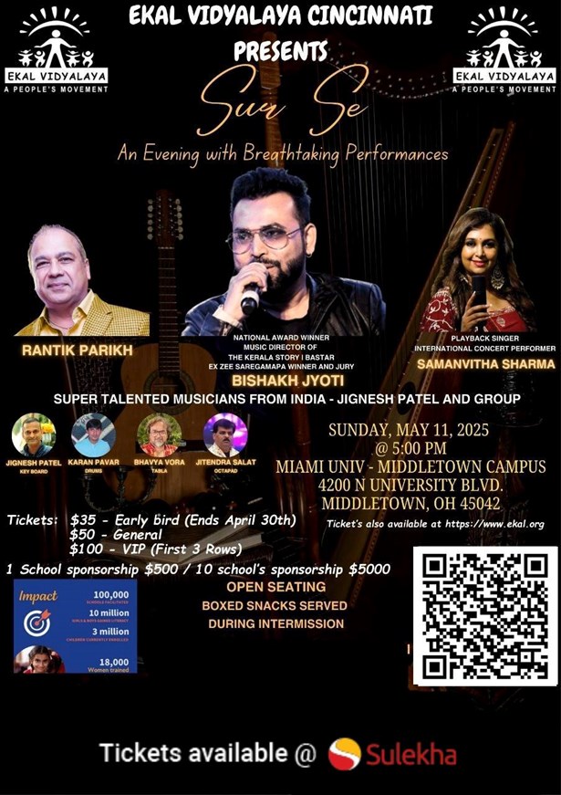 Join us for an inspiring evening with Ekal Vidyalaya Cincinnati, a cultural event dedicated to supporting education and empowerment in rural India!