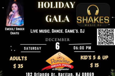 Holiday Gala in Newjersey DEC 06, 6:00PM (EDT) Paradise Biryani Pointe, 182 Orlando Dr, Raritan, NJ Pakka Mass Entertainment $15 - $35 Buy Tickets