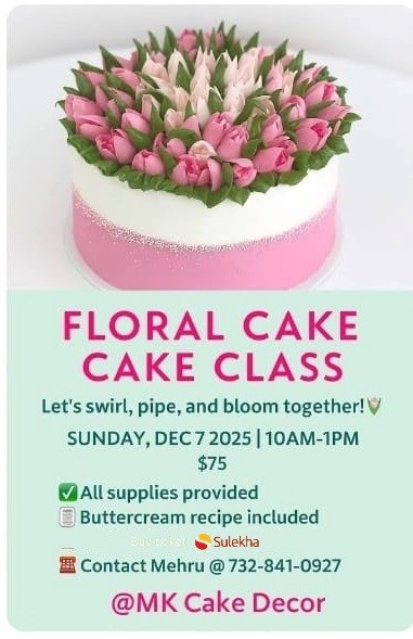 Get ready for a unique culinary experience on the 7th of December, 2025. Mehru Khan welcomes you to the "Floral Cake Class with Mehru in New Jersey", an event that promises to ignite your passion for baking. This event offers an excellent opportunity to get hands-on experience with Mehru, a renowned cake artist. Deepen your understanding of bakery arts as you delve into the techniques of creating a floral cake. The event is multilingual, with instructions available in Hindi, English, and several other languages, making it a perfect environment for food and drink enthusiasts from diverse backgrounds.