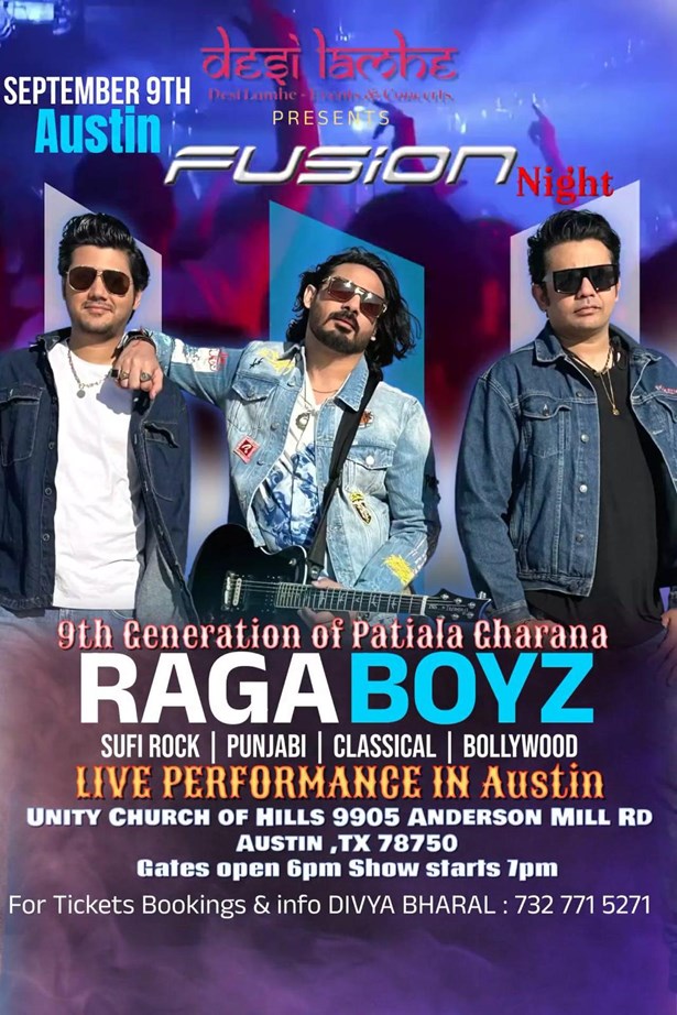 Desi Lamhe - events and concerts brings to you Fusion Night with the Raga Boyz on Sep 9th 2023 at the Agave Club , 13422 Dessau Road, Austin TX 78754