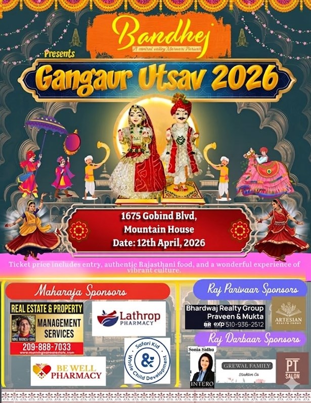 Celebrate the vibrant Rajasthani festival of Gangaur Utsav with the community in Mountain House! Join friends and families for a joyful cultural gathering filled with traditional music, colorful attire, festive rituals, and lively celebrations honoring Goddess Gauri and Lord Shiva.