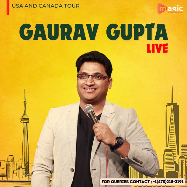 Indian comedian Gaurav Gupta who is one of the top comedians of recent times, known for his "being baniya" comedy, is coming to perform in the USA for the second time. His extremely popular shows, taking a crack at Indian household have left the audience in splits.