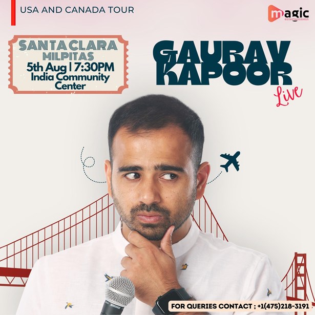 Gaurav Kapoor Live in Milpitas, Santa Clara - Monday Show 7.30 PM