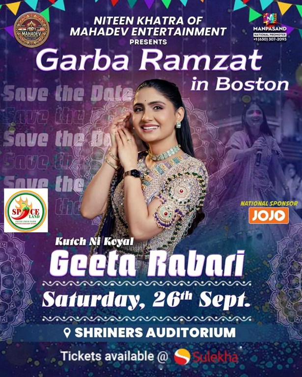 Get set to dance the night away at Geeta Rabari Garba Ramzat in Boston - Biggest Garba Night 2026! This electrifying event is slated to take place on the 26th of September, 2026, and promises a night filled with enchanting Gujarati music, rhythmic dance, and unforgettable memories. Organized by the eminent Mahadev Entertainment, this event combines the traditional elements of Navratri/Dandiya with a live concert experience. Come, revel in the rhythm of the music, the beauty of the dance, and the passion of singing at this grand celebration.