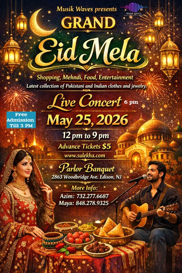 Mark your calendars for the extravagant Grand Eid Mela to be held on the 25th of May, 2026. Immerse yourself in a cultural extravaganza, celebrating the harmony of Hindi, Urdu, Punjabi, Bengali, and Gujarati cultures. The event promises a day filled with joyous exhibitions, live concerts, and soulful music, creating a vibrant and memorable experience. Hosted by the renowned organizers, Azim NJ Musik Waves, this event is a perfect blend of tradition and entertainment.