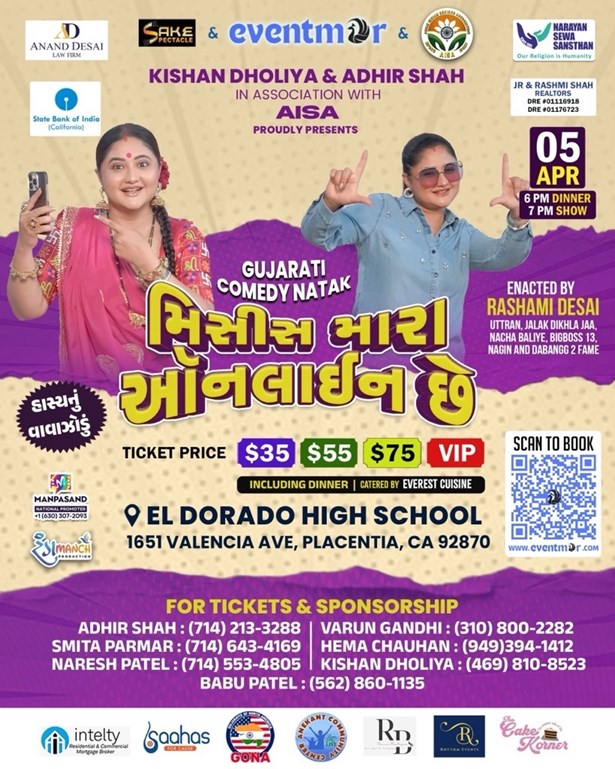 Get ready to unleash your laughter as Eventmor brings you the most anticipated event of the year - Gujarati Comedy Natak! Mark your calendar for the 5th of April, 2026 and prepare to be swept off your feet with an evening filled with humor and entertainment. This Gujarati comedy event is a perfect blend of culture and fun, promising an unforgettable experience for all. Don't miss out on this incredible opportunity to enjoy the best of Gujarati comedy right in the heart of Los Angeles!