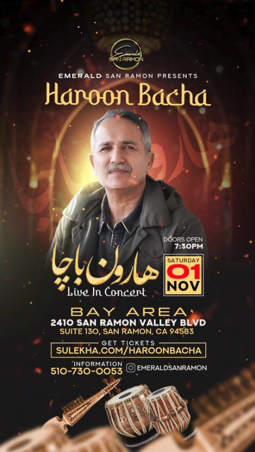 Buy ticketsEvent InfoVenueArtists Info Videos GalleryT & C FAQ Covid-19 Info Buzz Ticket Information Pay $0.00Register General Admission $100.00 incl. $0.00 fee Available 0 1 2 3 4 5 6 7 8 9 100 Ticket close on Nov 10 Tickets / Total: Pay $0.000 Tickets Register Order Summary Tickets Order Summary Amount Payable $ Event Details Venue Details Emerald San Ramon2410 Valley Blvd #130 , San Ramon , CA 94583 X Report Error Is the information provided incorrect? Report it now! Event has been cancelled Event has been postponed This is an Adult event Event is fake/Inappropriate/Duplicate This event is a spam Please remove this event This event is private About this eventImmerse Yourself in a Night of Classical Urdu Music Popopular Events Inc. cordially invites you to "Haroon Bacha Live in Bay Area" on the 1st of November, 2025. This much-awaited evening promises an unforgettable journey into the soulful world of classical Urdu and multilingual music. Experience a live concert that blends tradition and modernity, leaving you captivated and wanting for more. This event is a must-visit for connoisseurs of classical music and Urdu poetry. Haroon Bacha: The Voice of Pakhtun Poetry Haroon Bacha is the renowned artist behind this enchanting evening. A stalwart in the world of music, Bacha is known for his unique renditions of Pakhtun poetry. His soulful performances and powerful vocals resonate with audiences around the world. With Bacha on stage, the audience is guaranteed a mesmerizing experience that transcends linguistic barriers, connecting directly to the heart and soul. Experience the Grandeur of Emerald San Ramon The concert will be held at the esteemed Emerald San Ramon, located at 2410 Valley Blvd #130, San Ramon, CA, United States. Known for its elegant interiors and top-notch facilities, Emerald San Ramon offers an intimate space for enjoying Bacha's captivating performances. The venue is conveniently located and safe, with ample parking spaces available. For those who enjoy Indian cuisine, the locality boasts several exquisite Indian restaurants that promise an enriching culinary experience before or after the concert. Secure Your Seat Today! Be a part of this mesmerizing evening by securing your General Admission ticket for only $100.00. Book now to ensure you don't miss out on this riveting live concert by Haroon Bacha. Your ticket to a night of soul-stirring music is just a click away! Terms & Conditions1. Tickets once purchased cannot be modified or cancelled. Refunds will be initiated only in case of event cancellation. 2. Transaction fee per ticket may be levied. Please check the total amount before payment. 3. Organizers hold the right to deny late entry to the event. Hence, we recommend reaching the venue an hour before the event starts to ensure smooth entry. 4. If an event is canceled/postponed, Sulekha will refund only the face value of the ticket and NOT the transaction fee. 5. Every venue has its own rules and regulations. They hold the right to deny entry on the basis of the same. 6. These terms and conditions are subject to change from time to time at the discretion of the organiser. 7. Important Alert: Tickets purchased from third parties are not authorized by Sulekha and will be denied entry. Buy only from Sulekha to ensure valid access. 8. As per current Bay Area mandatory health requirements, all attendees must present proof of a COVID-19 vaccination in order to enter the venue and attend the show. 9. Mask wearing is mandatory for all. 10. The venue reserves the right to alter safety protocols at any time and at its sole discretion of the management. 11. The event organizers value the safety of our audiences, artists, and staff. FAQ's How do I purchase tickets? There are several options when buying tickets: You can purchase any ticket to any events listed on our website. To buy, select the # of tickets you want to purchase in the dropdown of a specific event and follow the instructions. Email. Not sure where to go or how to buy tickets? Email us at us.sulekha@sulekha.com. Phone. You can purchase tickets over the phone 1-512-788-5300 (Mon to Fri - 11am to 8pm – EST) What is Sulekha's Refund Policy? All sales are final. No Refunds will be issued under any circumstance unless an event is canceled or rescheduled. If you event is canceled, in most cases you won't need to do anything. We will inform you about the cancelation and face value of the ticket will be refunded to your account, NOT the transaction fee. Refund will be processed by the same payment method used for purchase. By purchasing tickets you are accepting these terms. If you have any questions, please email us at us.sulekha@sulekha.com or call 1-512-788-5300 (Mon to Fri - 11am to 8pm – EST) Covid-19 Info Protecting Yourself Please follow the preventative measures recommended by the WHO and local authorities and public health agencies like the CDC. Please contact the event organizers to learn what they are doing to keep event attendees safe and healthy. What you should know before you go? Before you purchase your ticket or head to an event, it is important to understand the health guidelines and entry requirements. Event Organizers have adopted to ensure the safe return of live events. What is a Health Check? Health Checks are safety protocols instituted by Event Organizers to help reduce attendee exposure to COVID-19. Sulekha does not set or control Health Check guidelines, which is why different events you see in our marketplace may have different protocols. While specific requirements vary across venues and events, some common measures may include, but are not limited to: proof of full vaccination against COVID-19, proof of a negative COVID-19 diagnostic test result prior to entering the event, a rapid onsite COVID-19 test, or participating in a brief health questionnaire. Who decides if a Health Check is required? In partnership with local health departments and government guidelines, the Event Organizer m