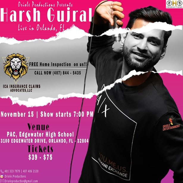 Orlando - As we gather around the Diwali festival and approach Thanksgiving, what better way to celebrate than with an evening of laughter and entertainment? Harsh Gujral's performance promises to be a highlight of this festive season, offering the perfect opportunity to unwind, relax, and share moments of joy with friends and family.