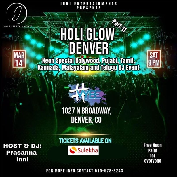 This is at one of the best venues in Denver . Dance non stop to Tollywood and Bollywood Beats.