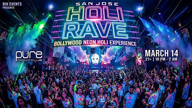 Bay Area’s biggest Bollywood Neon Holi Party hits Pure Nightclub on Mar 14 ! Massive stage, glow vibes, white dresscode. 21+