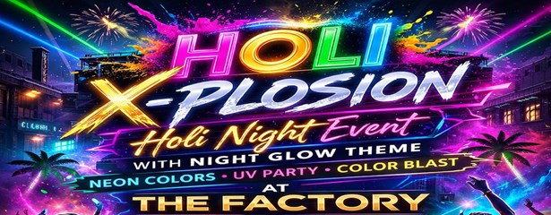 HOLI-X-PLOSION transforms THE FACTORY into a glowing paradise of neon colors, electrifying beats, and high-voltage energy. This isn’t your traditional Holi — this is a Holi Night Event designed to shine and explode in luminous brilliance.