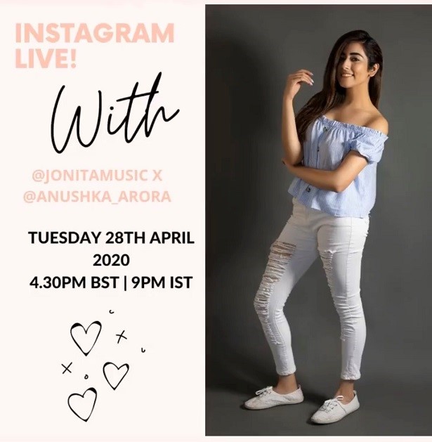 This event has ended on 28th Apr, 2020 HomeInstagram Live Jonita Gandhi and Anushka Arora SingingMusicHindiTeluguTamil Instagram Live Jonita Gandhi and Anushka Arora Tue, Apr 28 at 9:00 PM(IST) Tue, Apr 28 7:30 AM (AKDT)Tue, Apr 28 8:30 AM (PDT)Tue, Apr 28 8:30 AM (MST)Tue, Apr 28 10:30 AM (CDT)Tue, Apr 28 11:30 AM (EDT)Tue, Apr 28 12:30 PM (ADT)Tue, Apr 28 9:00 PM (IST) Live Streaming Watch on Instagram