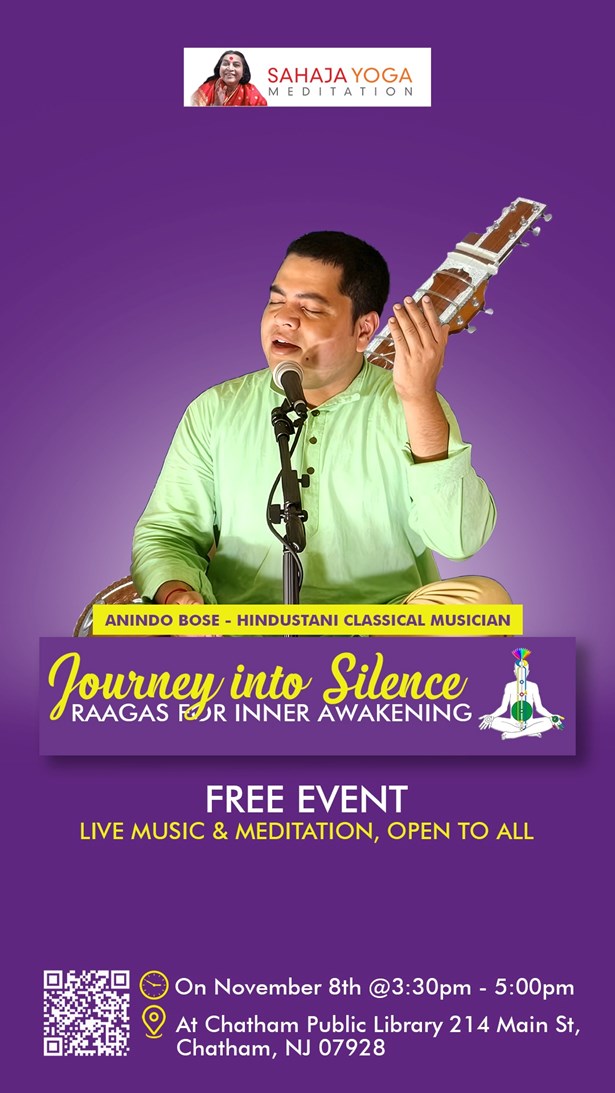 RegisterEvent InfoVenueArtists Info Videos GalleryT & C FAQ Covid-19 Info Buzz Ticket Information Free entry 0 1 2 3 4 5 6 7 8 9 100 0 Tickets / Free: Register Order Summary Tickets Order Summary Event Details Join us for a serene afternoon of music and meditation through the soulful Raagas that inspire inner peace and awakening.*Program Highlights*Join us for a special concert by Anindo Bose, a distinguished practitioner of Indian classical music specializing in Dhrupad, Bhajan, and Nirguni Geet traditions. His performances carry listeners into profound meditative silence, transcending the beauty of the compositions themselves.🍵 Light refreshments will be provided.Venue Details Library of the Chathams214 Main St , Chatham , NJ 07928 X Report Error Is the information provided incorrect? Report it now! Event has been cancelled Event has been postponed This is an Adult event Event is fake/Inappropriate/Duplicate This event is a spam Please remove this event This event is private Terms & Conditions1. Pre-booking shows your interest and provides early access to ticket booking, but it is not a confirmed ticket. 2. It holds a spot for you in the queue, but not a specific seat number. 3. The booking link will be sent via email or app notification. Complete payment within the specified time to confirm your ticket. 4. Early booking access is limited and will expire once the priority window closes. 5. No payment is collected during the pre-booking process; payment is made only upon actual ticket purchase. 6. Pre-booking does not guarantee ticket availability, especially for high-demand events with limited capacity. 7. Only one pre-booking is allowed per user per event; multiple entries may be cancelled. 8. Events.sulekha.com reserves the right to modify or withdraw the pre-booking option at any time.FAQ's What is a Pre-Registered Event? A pre-registered event allows you to express interest in an upcoming event before ticket sales go live. It helps you stay ahead and secure your spot early! Does pre-registering mean I’ve booked my ticket? Nope! Pre-registration is just a heads-up. You’ll get an email when ticket booking opens, and you’ll need to complete the booking to confirm your seat. Will I get a specific seat number when I pre-register? No. Pre-registration assures you a seat (subject to availability), but not a specific seat number. How will I know when tickets are available? We will email you a booking link once ticket sales go live. If, for any reason, the email or notification does not reach you, please note that individual follow-up may not be possible. We recommend checking the artist page on events.sulekha.com for updates. Is there a fee to pre-register? Nope! Pre-registration is absolutely free. You’ll only pay when you book your ticket. Can I cancel my pre-registration? There’s no need to cancel. If you’re no longer interested, simply ignore the booking email. Covid-19 Info Protecting Yourself Please follow the preventative measures recommended by the WHO and local authorities and public health agencies like the CDC. Please contact the event organizers to learn what they are doing to keep event attendees safe and healthy. What you should know before you go? Before you purchase your ticket or head to an event, it is important to understand the health guidelines and entry requirements. Event Organizers have adopted to ensure the safe return of live events. What is a Health Check? Health Checks are safety protocols instituted by Event Organizers to help reduce attendee exposure to COVID-19. Sulekha does not set or control Health Check guidelines, which is why different events you see in our marketplace may have different protocols. While specific requirements vary across venues and events, some common measures may include, but are not limited to: proof of full vaccination against COVID-19, proof of a negative COVID-19 diagnostic test result prior to entering the event, a rapid onsite COVID-19 test, or participating in a brief health questionnaire. Who decides if a Health Check is required? In partnership with local health departments and government guidelines, the Event Organizer monitors local COVID-19 trends and determines if Health Checks will be required to attend an event. In some instances, an Event Organizer may choose to exceed protocols mandated by local governments. Check with your Event Organizer to know the updates and guidelines. Is Sulekha requiring proof of vaccination or a negative COVID-19 diagnostic test for entry? No, Sulekha does not set or control Health Check guidelines. Certain Event Organizers are opting to require entry qualifications for fans to attend their event. Additionally, some state and local governments are mandating Event Organizers to require health checks at entry. Check with your Event Organizer to know the updates and guidelines. I am ineligible for vaccination due to underlying health conditions, am I unable to attend an event requiring vaccination? Most Event Organizers requiring Health Checks will ask unvaccinated fans over 12 years old with a valid medical restriction & medical note to take a COVID-19 diagnostic test and provide proof of negative result prior to entering the venue. To know further details regarding the health checks and guidelines, please contact the Event organizers. You can also locate free testing in your area by using this helpful resource developed by the U.S. Department of Health & Human Services.