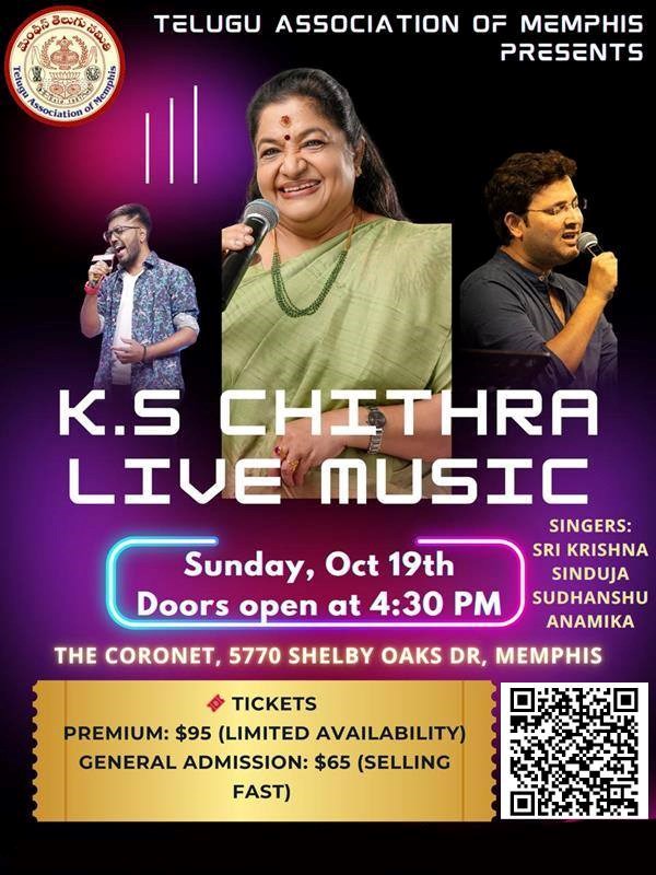 ✨ Join us for an unforgettable evening filled with soulful Telugu, Tamil, and Malayalam melodies that have touched millions of hearts across the globe. With a career spanning over four decades and more than 25,000 songs, K.S. Chithra brings her magical voice to Memphis for the very first time!