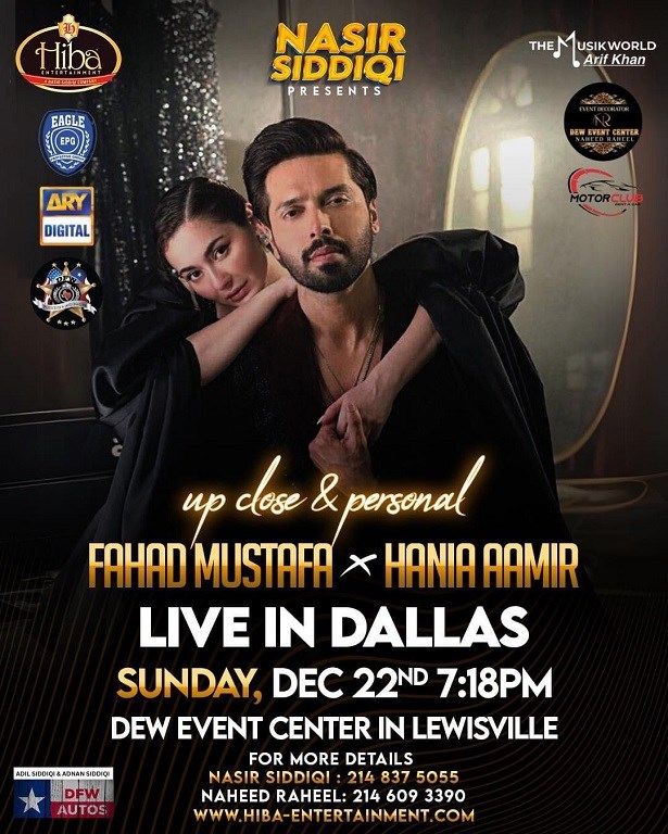 Get ready, Dallas! Witness an unforgettable evening filled with charm, talent, and mesmerizing performances by Pakistan's iconic stars Fahad Mustafa and Hania Amir in Kabhi Main Kabhi Tum. These powerhouse actors are set to light up the stage at the DEW Event Center!