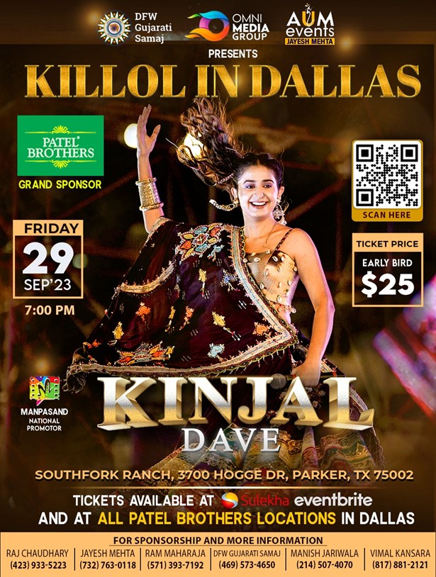 From foot-tapping Garba beats to soulful melodies, Kinjal Dave's repertoire includes a diverse range of music that resonates with people of all ages. Attendees can expect to groove to her top hits like "Char Bangdi Vali Audi Varraja Ni Gadi," "Leri Lala," and "Chote Raja."