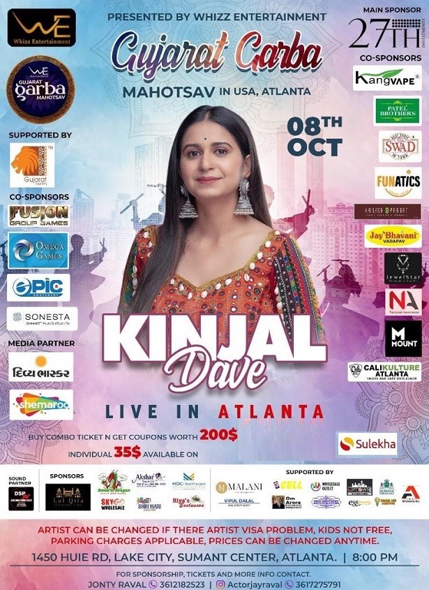 For the first time in ATLANTA Whizz Entertainment presents "Gujarat Garba Mahotsav 2023- Atlanta" with Well-known artists from Gujarat India who represent our tradition and culture with their voice and performance not only in India but all over the world.