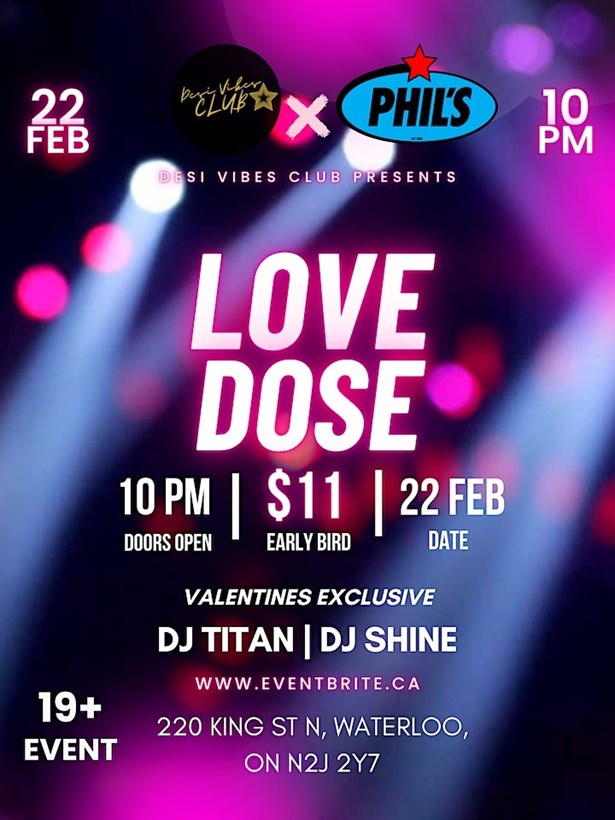 Event Details About this event Venue Details Venuelocation Phil's Grandson^s Place220 King Street North , WATERLOO , ON N2J 2Y7 Organizer Details Desi vibes club