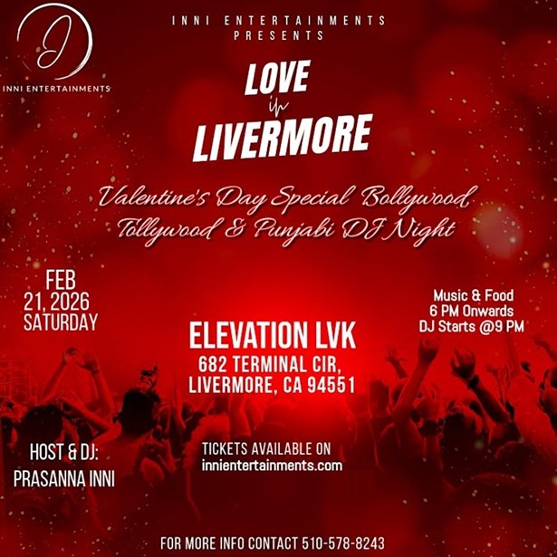 Embrace the enchantment of love and unity at our forthcoming event, LOVE in LIVERMORE, scheduled for the 21st of February, 2026. This multilingual extravaganza promises a lively fusion of Hindi, Telugu, Tamil, and Malayalam tracks, making it a perfect Valentine's Day retreat. Food aficionados will be in for a treat with an exquisite array of Food & Drink options. Immerse yourself in the vibrant night party atmosphere and let your spirit sway to the rhythm of the dance.