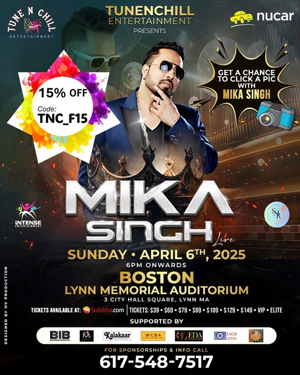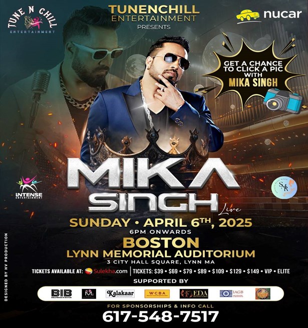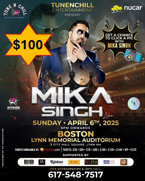 Get ready for a spectacular night of high-energy entertainment with Bollywood's rockstar King Mika Singh live in concert! Join us for an unforgettable evening as Mika brings his chart-topping hits and electrifying stage presence to Lynn Memorial Auditorium, 3 City Hall Square, Lynn, MA on Sunday, April 6th at 6pm. Bring your dancing shoes on to dance into the night with the legendary Mika Sigh on Bollywood dancing numbers like: