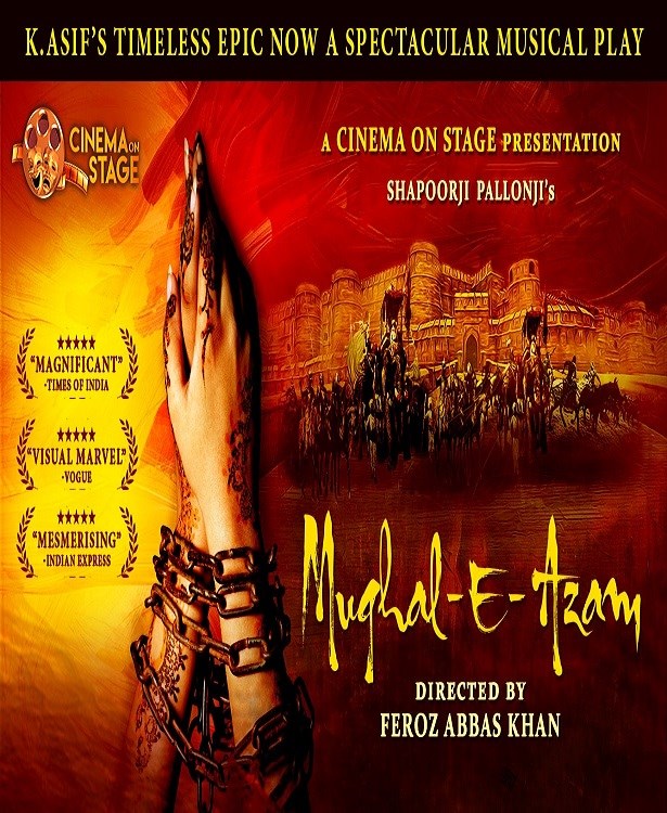 Most expensive theatre production in Indian history. The musical's soul is Indian classical music and Kathak dance, and the songs are performed live from the original film. Produced by Shapoorji Pallonji and directed by Feroz Abbas Khan, Mughal-e-Azam: The Musical has already captivated audiences across Mumbai, Delhi, Ahemdabad, Dubai, Kuala Lumpur, Singapore, Doha, and Muscat. The addition of English subtitles ensures a wider audience can enjoy the performance. Don't miss your chance to experience the first Indian Broadway-style musical, Mughal-e-Azam: The Musical - where romance and royalty meet in a grand spectacle of music, dance, and drama. The Musical - presented in North American by Cinema on Stage, an entertainment company dedicated to bringing world-class productions to audiences across the continent.