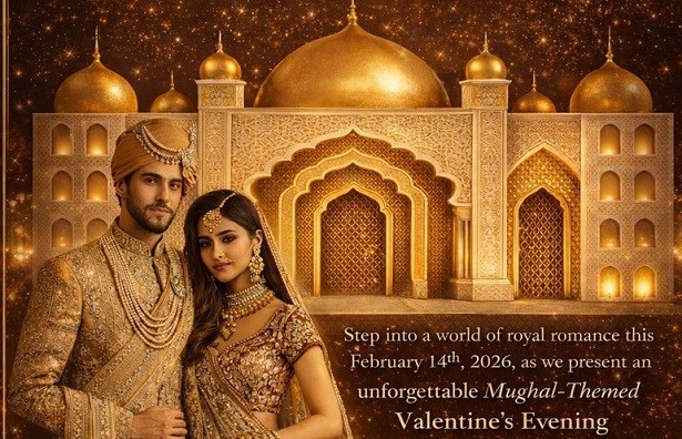 Immerse yourself in an enchanting evening of romance and era-inspired grandeur at 'The Mughal Soiree', a Mughal themed Valentine's Event. This timeless rendezvous is set to take place on the 14th of February, 2026. Reflecting the opulence of the Mughal era, this unique fusion event will transport you to a world of regal splendor and passionate love, creating an unforgettable Valentine's Day experience.
