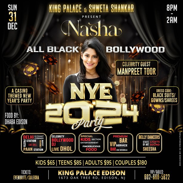 FOMOO Events presents the ultimate Bollywood Bash on New Year's Eve 2024. Strike the New Year with a night filled infectious music by celebrity DJ and a dance floor that pulses excitement. Indulge in a lavish spread of desi cuisine and sip on exotic cocktails. Don your most glamorous attire and immerse yourself in the magic of Bollywood as we bid farewell to the old and welcome the new year in true star-studded style!