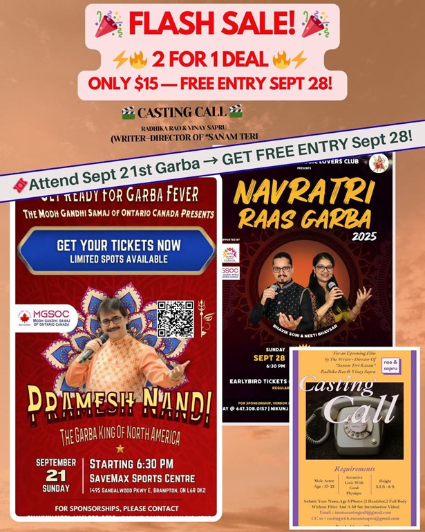 #2For1 #Navratri2025 #GarbaNight #BramptonEvents #GarbaVibes #BOGOF #DanceTheNightAway #CastingCall #FilmAuditions #BollywoodCasting