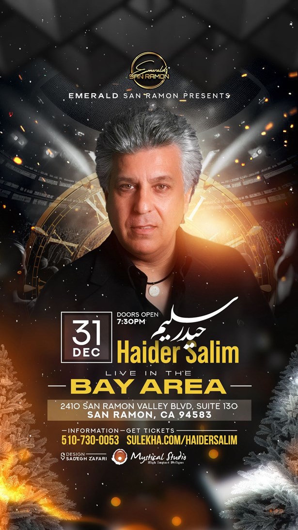 Prepare to be captivated by the enchanting voice of Haidar Salim, a renowned Afghan singer based in Dublin, California. Gaining popularity in the 1970s, Salim's fame has remained undiminished throughout the years. His recent hit "Ghazal" from his latest album has been a sensation, mesmerizing audiences and music lovers alike. Come and witness the magic of his music as he takes you on a melodious journey this New Year's Eve.