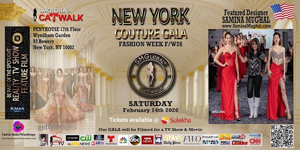 Mark your calendars for the ultimate fashion extravaganza, the 'New York Couture Fashion Week Gala With Designer Samina Mughal', scheduled for the 14th of February, 2026. This prestigious event offers an exclusive opportunity to witness the interplay of Hindi and English music and a breathtaking exhibition of high-fashion couture. The grandeur of this event is bound to leave you awe-struck, as the fusion of artistic cultures and the exquisite display of fashion promise an unforgettable evening.